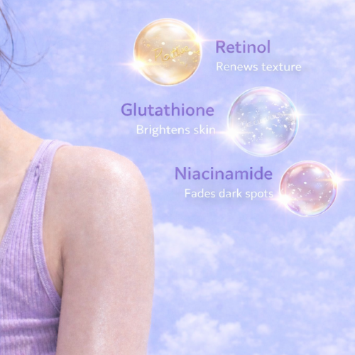 • Infused With: Retinol, Niacinamide, and Glutathione.